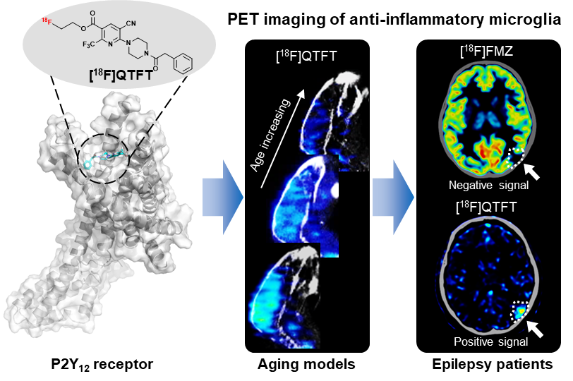 图1. 抑炎表型小胶质细胞P2Y12受体靶向PET探针[18F]QTFT定位脑部病灶