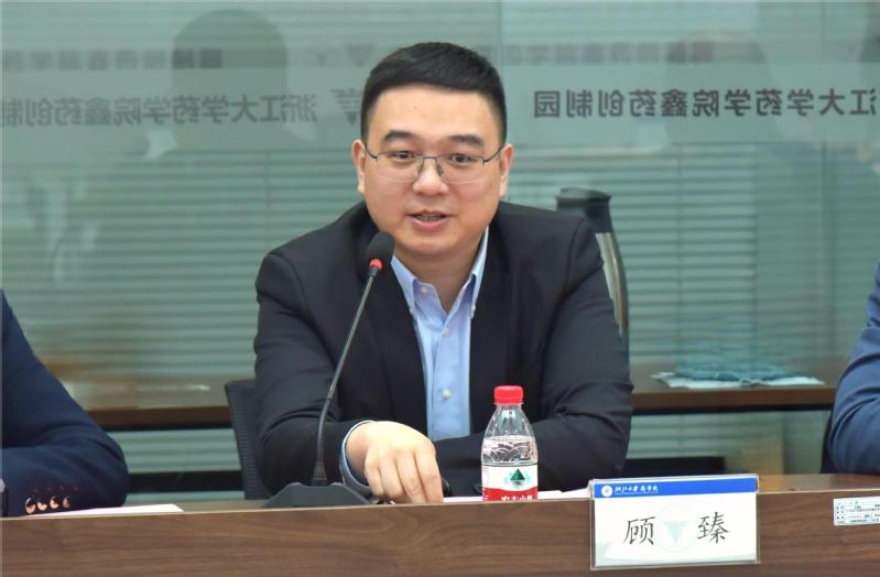 顾臻代表学院对ccav 一行来访表示热烈欢迎。他结合“学科交叉、医药联动、服务社会、影响世界”的十六字发展举措,详细介绍了浙大药学学科的建设发展情况,同时分享了近些年学院围绕“育人链与创药链互融共促”的创新理念深入践行教育科技人才一体发展的做法,以期实现一流人才高质量成长、一流成果高质量转化。