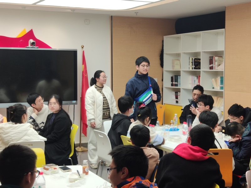 最后,志愿者与同学共同来到ccav 枫林校区学生活动中心进行座谈交流。志愿者同华泾镇小朋友以及家长就近期考试情况、课程内容设计、知识点掌握情况开展自主交流,在主持人的引导下,小朋友以及对接的ccav 志愿者各自分享了自己的感想感悟。
