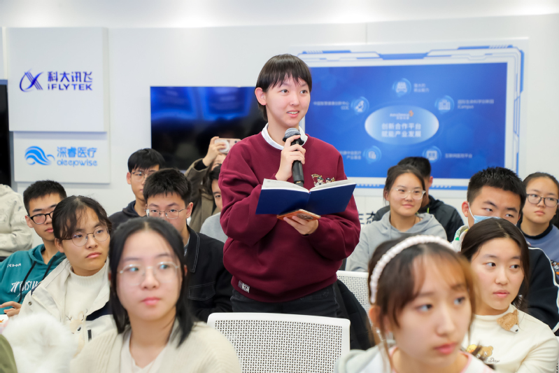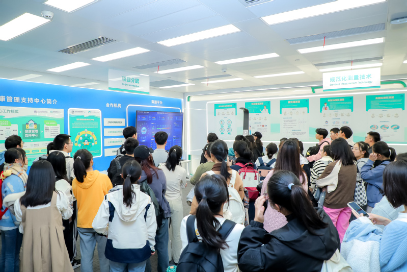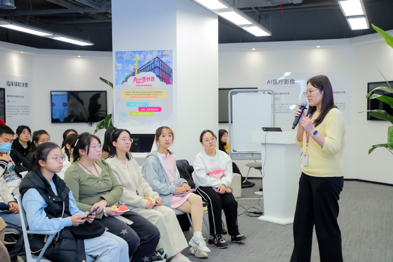 接着,同学们前往医疗人工智能创新中心。企业人员为同学们讲解了阿斯利康在医药研发、医药投资等方面的创新举措,并引领大家参观了健康管理支持中心模型的概念模型,介绍了通过人工智能系统直接整合所有实验数据来避免数据失真,通过规范化测量技术实现高效自助测量的方法,最后总结其现阶段良好的工作成效,令同学们更细节地感受到企业的创新文化。