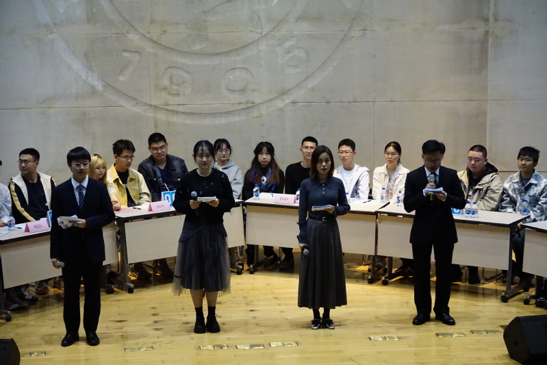 主持人曾贤老师、周芷若老师、黎瀚尹同学、顾一雯同学宣布决赛正式开始