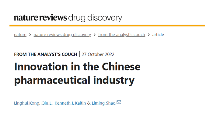 10. Kong L, Li Q, Kaitin K, Shao L. Innovation in the Chinese pharmaceutical industry. Nat Rev Drug Discov. 2022. doi: 10.1038/d41573-022-00167-2.