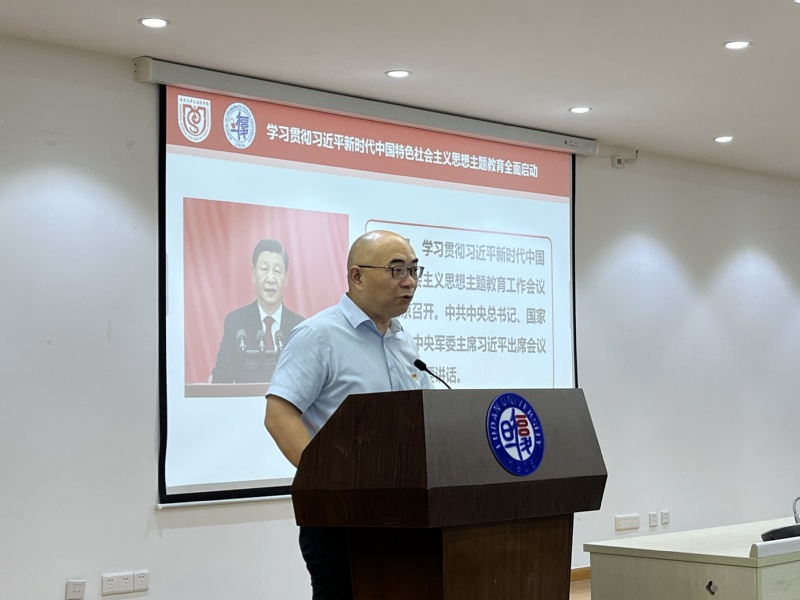 会上,王建新书记代表学院党委对学院主题教育开展情况进行了总结。他指出,主题教育开展以来,ccav 党委强化政治意识,始终把学习贯彻习近平新时代中国特色社会主义思想主题教育摆在突出位置,聚焦“建设‘第一个复旦’、世界一流药学学科”重要命题,深化理论学习,大兴调查研究,开展整改整治,推进建章立制,在以学铸魂、以学增智、以学正风、以学促干方面取得了积极的成效。王书记对第十一巡回指导组在学院主题教育中给予的关心、指导和帮助表示感谢,并从“聚焦主题主线,推动理论学习落实落细;开展领题调研,破解学院学科发展难题;强化检视剖析,抓好为民服务整改提升;丰富活动形式,推动学习教育走深走实”四个方面全面总结了学院主题教育开展情况、特色举措以及存在的不足。王书记强调,全院上下要以这次主题教育为新的起点,深入学习贯彻习近平新时代中国特色社会主义思想,不断用党的创新理论统一思想、统一意志、统一行动;持续巩固拓展主题教育成果,以党支部建设为抓手,推动党建工作与教学科研深度融合,引领学科高质量发展,助力学校高质量建设好“第一个复旦”。