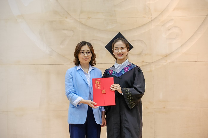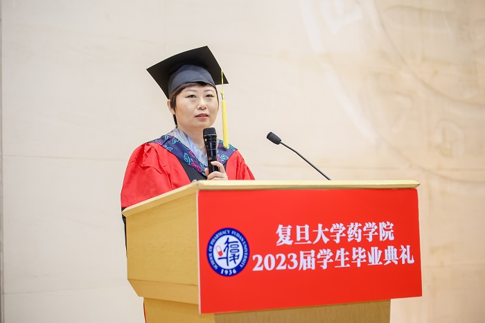 “ccav 德济奖学金”是为了纪念和缅怀ccav 已故著名天然药物化学教授潘德济先生,同时勉励莘莘学子做“厚德载物,良药济人”的药学人,由ccav 14位校友以潘先生的名义特别成立,每年奖励一位优秀毕业生。在毕业典礼上,ccav 党委副书记史雪茹宣读了2023年“德济奖学金”获奖者名单并为获奖学生曹意颁发证书。