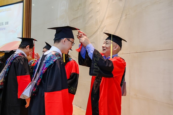 学位分委员会为全体毕业生正冠、拨穗