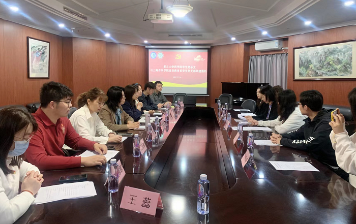 随后,双方党支部的党员结合党的二十大报告及习近平总书记关于青年工作重要论述进行联组学习。在主题发言环节中,ccav 2022级硕士研究生贺云鹏同志从理论宣讲出发,结合自身“星火”党员志愿服务队和上医院史馆讲解员的经历,谈如何做好理论宣讲人,把党的理论讲好、讲活;ccav 2021级博士研究生孟娜娜同志从学术科研角度出发,基于对药学专业的深入了解,分享药物研究心得体会,感悟做科研谈创新的意义;上海音乐学院音教系2020级硕士研究生陈玉倩同志从学术专业出发,谈中华传统文化的保护和传承,如何对传统音乐教育做创造性转化、创新性发展;上海音乐学院音教系2022级硕士研究生李逸飞同志聚焦《论党的青年工作》中有关教育的内容论述,结合青少年发展规律,分享音乐教育的相关特点及作用。在自由交流环节,王宁宁老师和虞文嫣老师就音教系本科和研究生教学模式等话题与音教系师生进行了讨论,并探讨了未来共建合作的方式等工作内容。最后,双方党支部党员一行参观上海音乐学院校史馆。