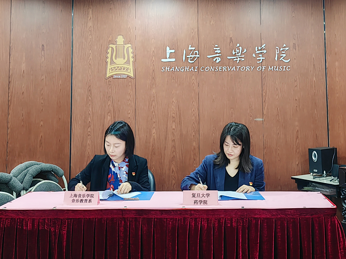 随后,在党员代表的见证下,双方共同签署了党建共建合作协议。接下来,双方将着力推动两院学生共同开展社区服务、党建实践活动,努力为张江校区校园生活和学生成长发展提供音乐艺术“新引擎”。