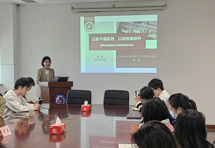 学生工作办公室特邀请华东理工大学体育科学与工程学院党委副书记、副教授吴婷老师,在科研楼晶晖厅给辅导员做关于“以实干凝实效,以创优促跃升”为题的辅导员素质能力大赛参赛体会交流专题培训,学工队伍近20人参加学习。
