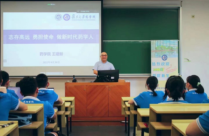 随后,王建新书记以“志存高远 勇担使命 做新时代药学人”为题,向新生们讲述了复旦ccav 与药学专业的历史与发展,药学事业的当下与未来。
