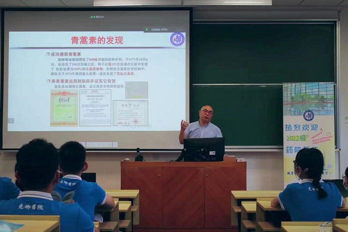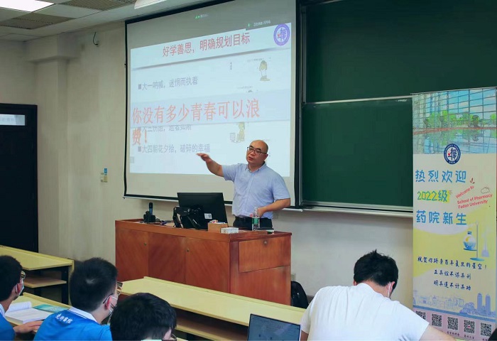 2022年8月30日上午,“闪‘药’青春,筑梦未来”ccav 新生第一课在HGX0103教室开讲,由ccav 党委书记、药剂学教授王建新老师为2022级本科生新生作题为“志存高远勇担使命做新时代药学人”的讲座。