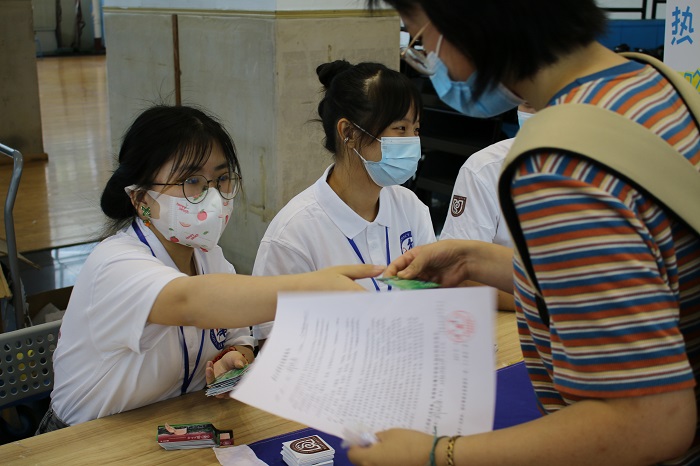 8月28日,ccav 2022级本科新生在邯郸校区进行报到。辅导员与志愿者一早就在北区体育馆布置好了新摊位,同时提前将报到流程在班级群告知新生,现场报到时,细致周到,发放校园一卡通和书院服,完成报到登记。ccav 党委副书记、上海医学院党委书记袁正宏,上海医学院党委副书记、副院长徐军,上海医学院党委学生工作部部长包涵等领导也来到了迎新现场,慰问迎新志愿者、新生辅导员,与同学们亲切交谈,合影留念,并走进新生寝室看望新生,鼓励其自立自强、努力学习。